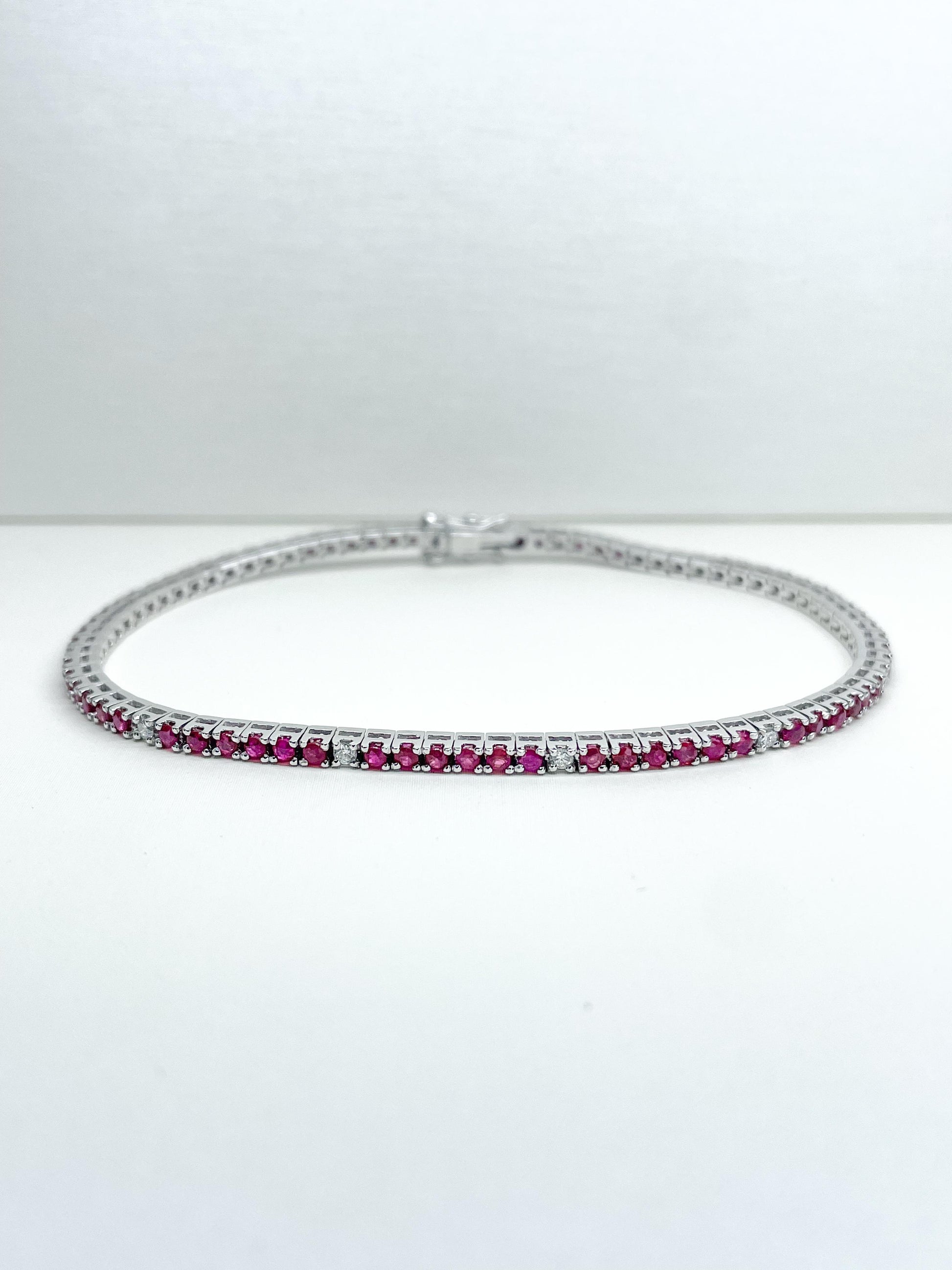 Bracciale Tennis in Oro bianco con Rubini e Diamanti