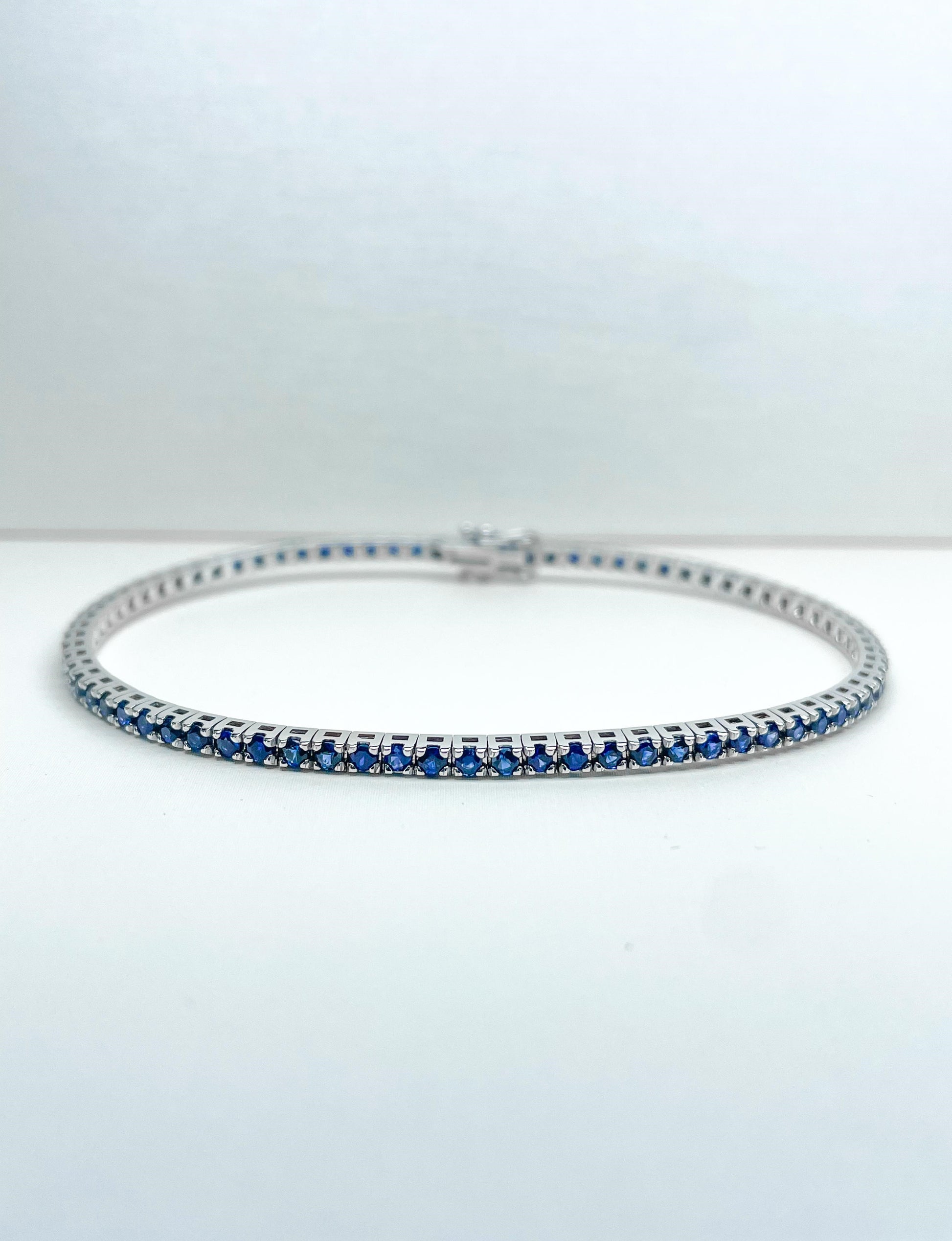 Bracciale Tennis realizzato oro bianco 18 kt con bellissimi zaffiri naturali da 2.60 ct, questo bracciale è l'accessorio perfetto per una persona elegante e sofisticata. Aggiungi uno scintillio di classe al tuo polso con il nostro Bracciale Tennis.