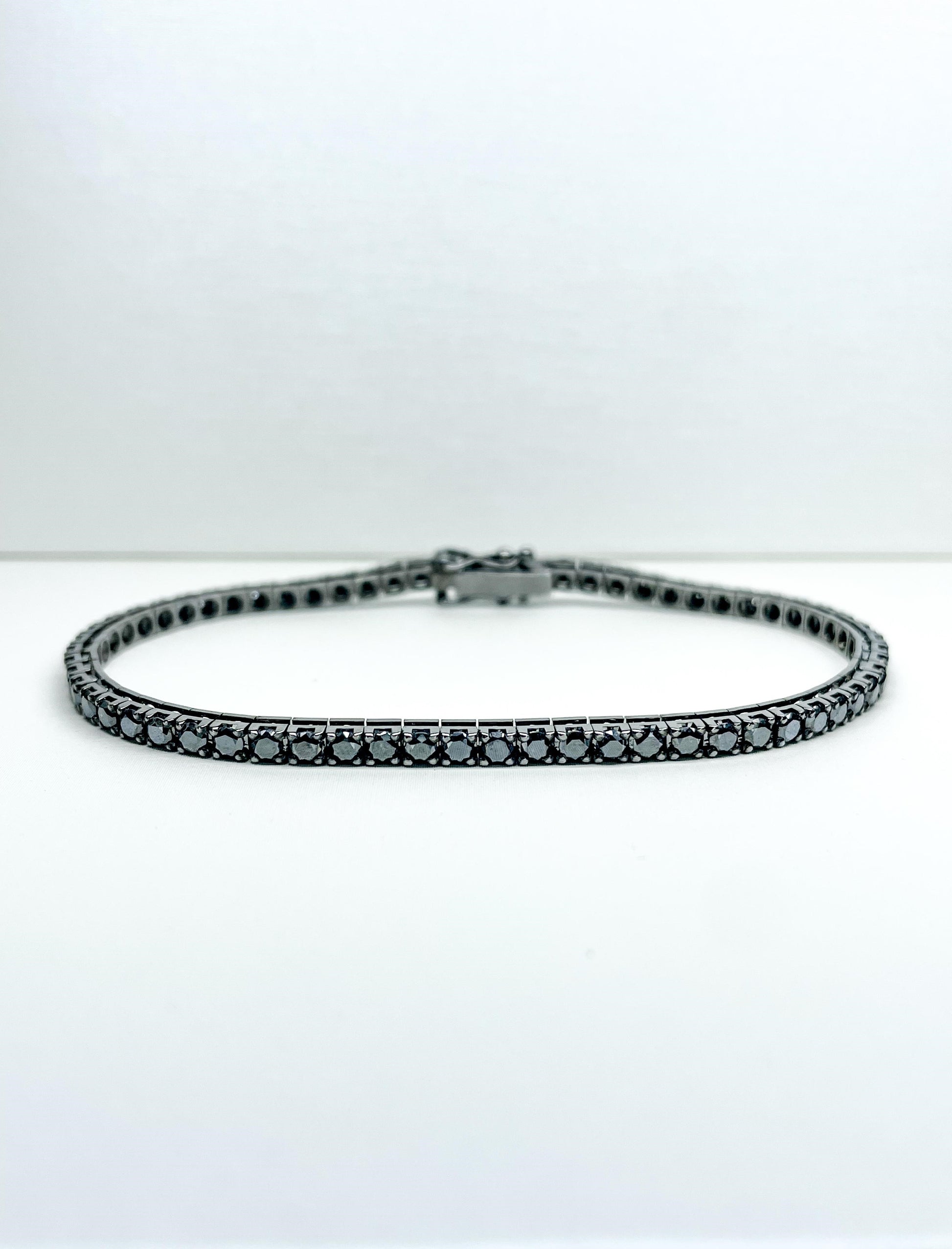 Bracciale Tennis in Oro Fumè con Diamanti Neri naturali
