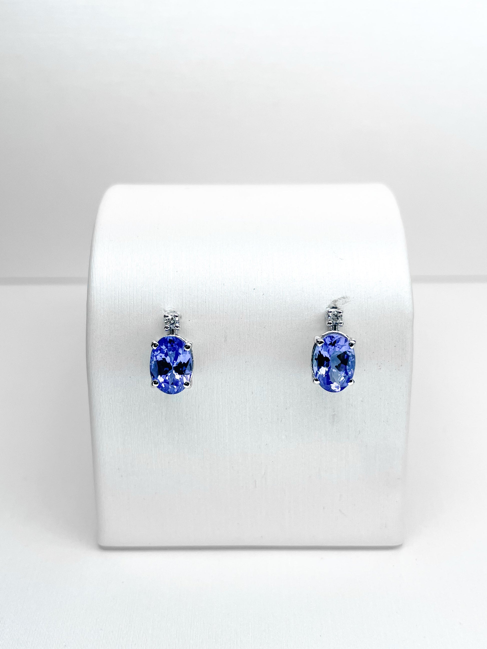 Orecchini a Perno in Oro Bianco con Tanzanite e Diamanti